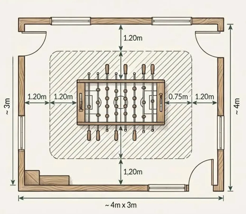 Il faut bien sûr regarder les dimensions de la table, mais surtout prévoir l’espace de recul pour manipuler les barres confortablement. Trop souvent, le baby-foot “rentre” dans la pièce… mais on ne peut pas jouer correctement.
