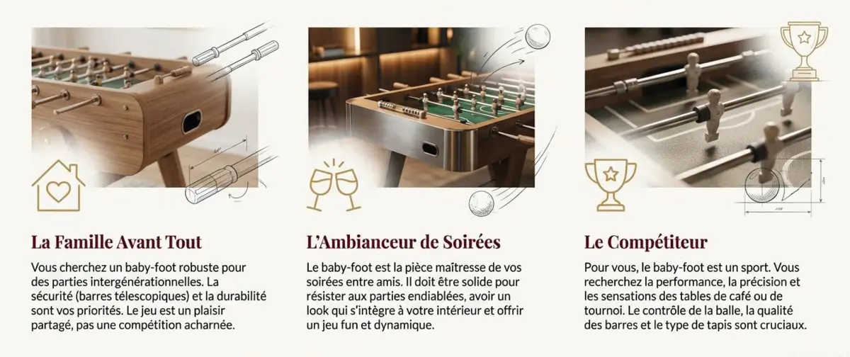 Se poser cette question dès le départ évite un piège courant : acheter un baby-foot “trop sérieux” pour des enfants… ou trop “jouet” pour des adultes exigeants.